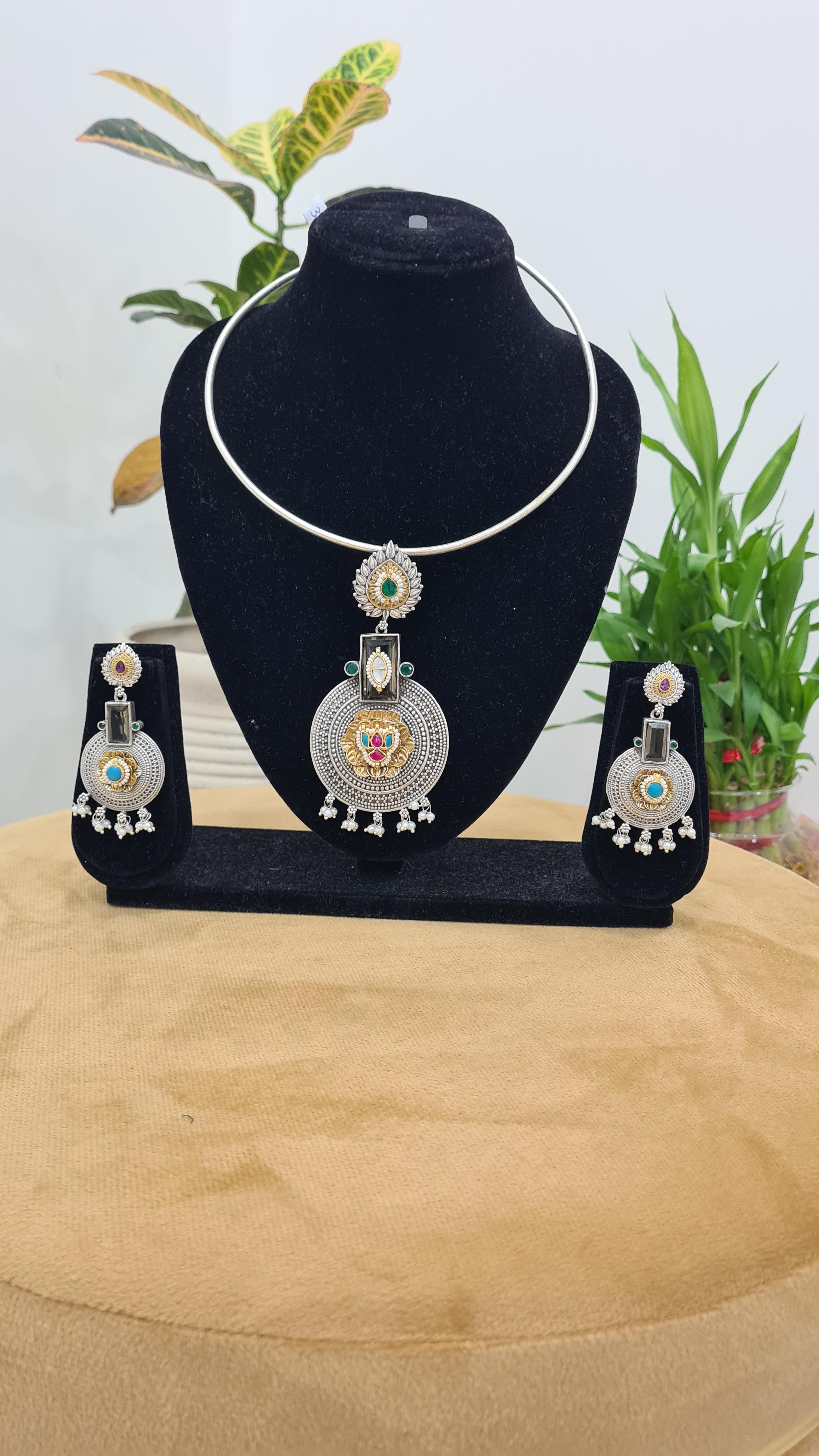 Elevate your look with our German Silver Fusion Necklace, featuring a beautiful fusion of traditional and modern design elements.