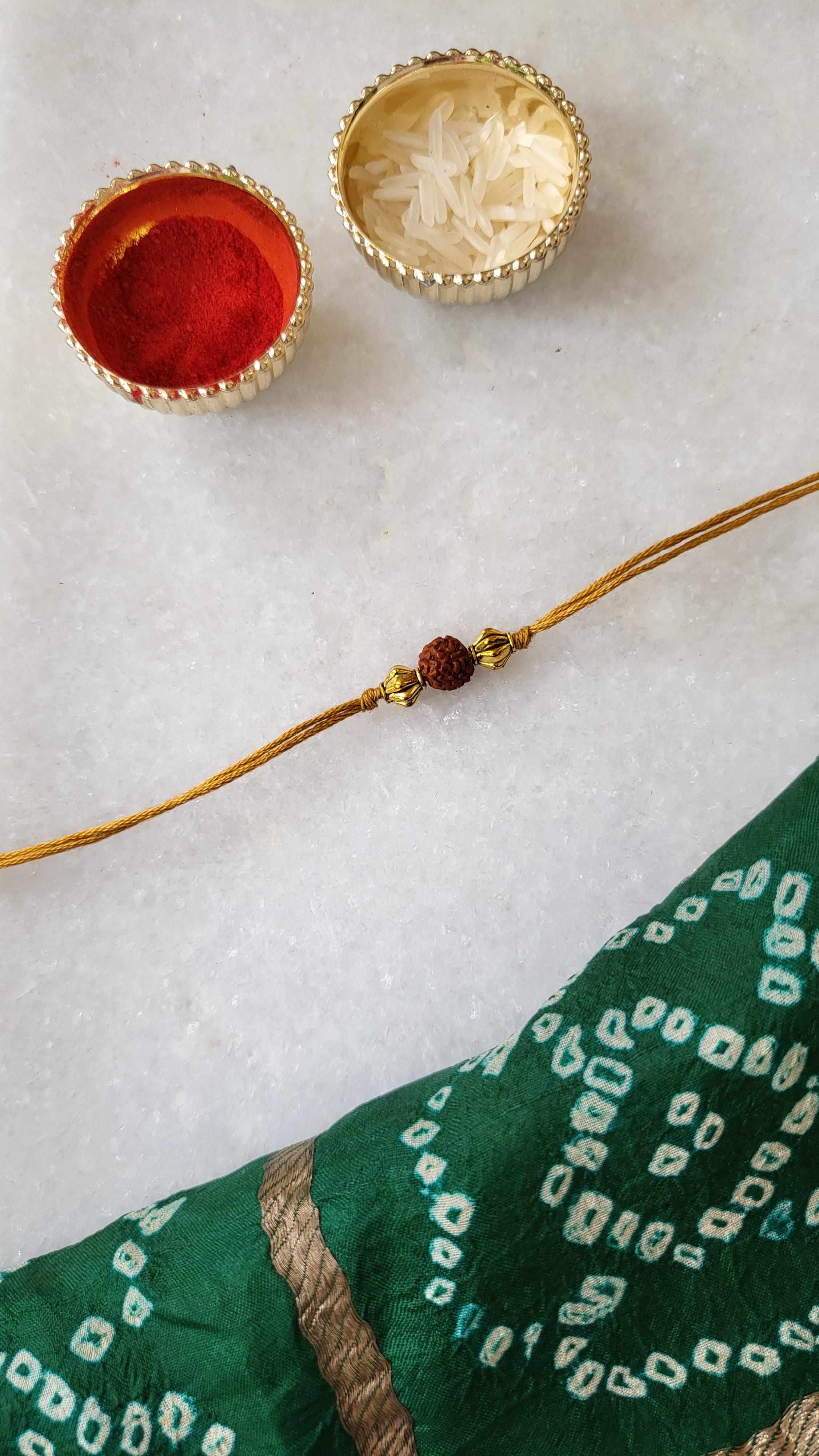 Mustard Yellow Rudraksh Rakhi